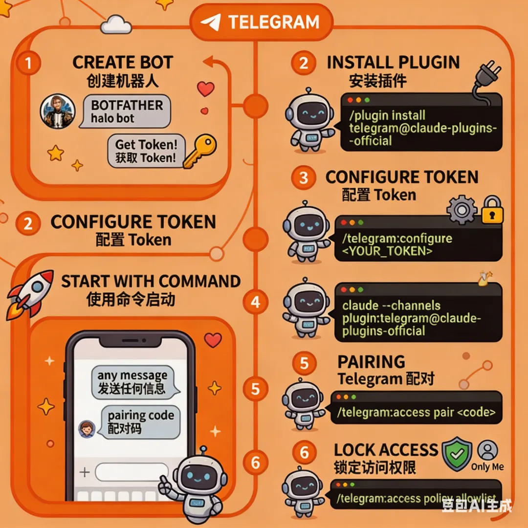 claude --channels plugin:telegram@claude-plugins-officialStep 5:完成 Telegram 配对