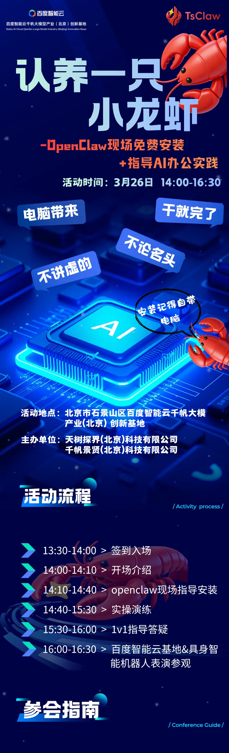Open claw丨3月26日来现场免费认养一只小龙虾!