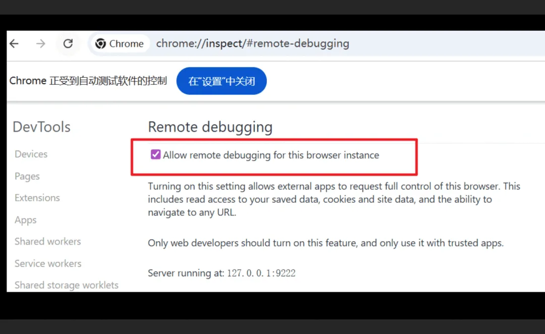 第二步:启用 Chrome 远程调试