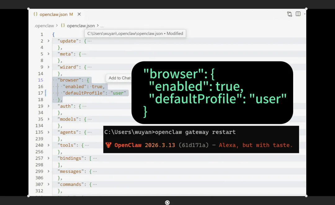 修改配置文件:~\.openclaw\openclaw.json