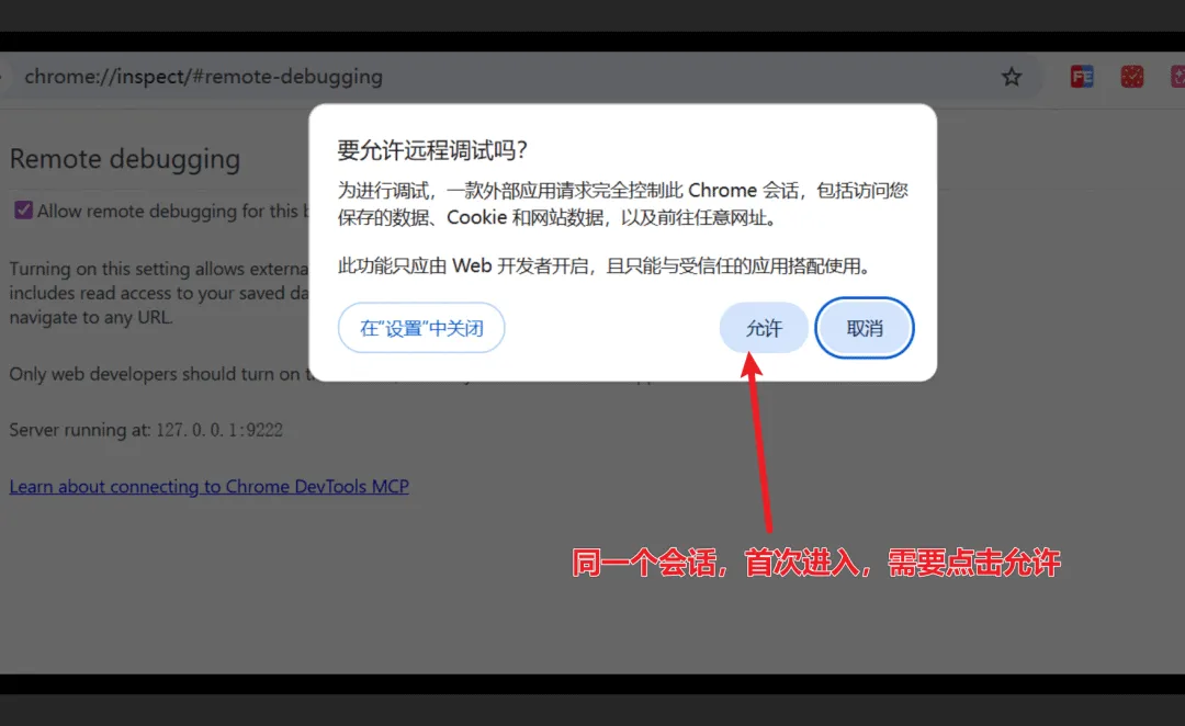 首次连接时,Chrome 会弹一个确认框,点击"允许"即可。之后不管执行多少次操作,都不会再弹了。