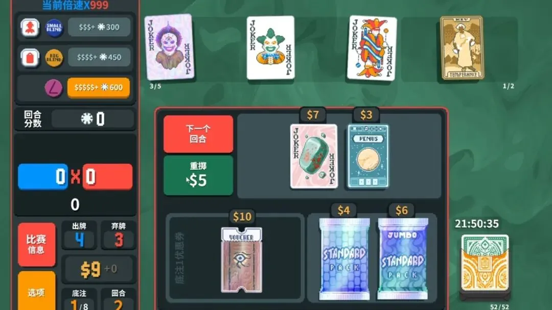 游戏还通过经济系统(每5金币产生1利息)和“跳过盲注获取随机标签”的风险抉择,迫使玩家在短期收益与长期成长间反复权衡:是稳健地赚取金币利息,还是冒险跳过一轮商店去博取一张可能改变命运的稀有标签?。而它最为人称道的,是在极高的随机性中为玩家保留了充分的掌控感——每一局的初始牌组、商店刷新、小丑牌出现都充满变数,但玩家永远可以通过对得分公式(筹码×倍率)的深刻理解、对小丑牌效果的灵活搭配,以及在“是否需要卖掉当前核心去赌一张更强小丑”的决策中,将一把烂牌打出绝境翻盘的爽感。正如GameSpot所言,这款游戏的秘密 sauce 在于“不要求完美”——你不需要凑齐天胡构筑,只需要在每一次濒临失败的边缘,用最后一个弃牌、最后一次出牌、最后一块金币,拼凑出刚好够用的分数,那种“我居然这也能赢”的成就感,比轻松碾压更令人上瘾。