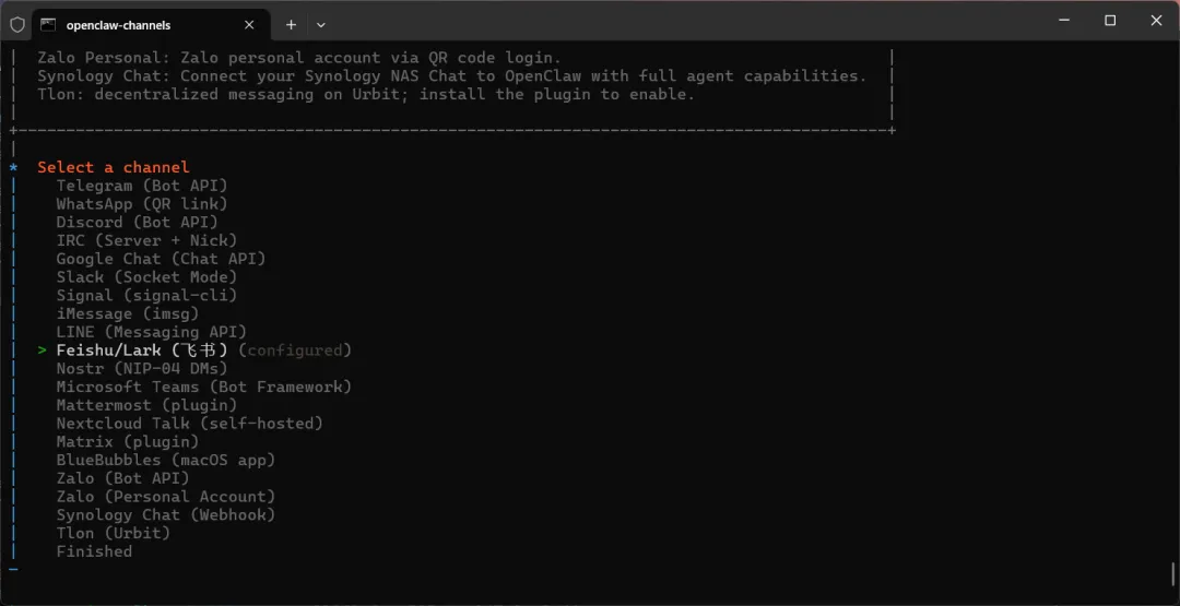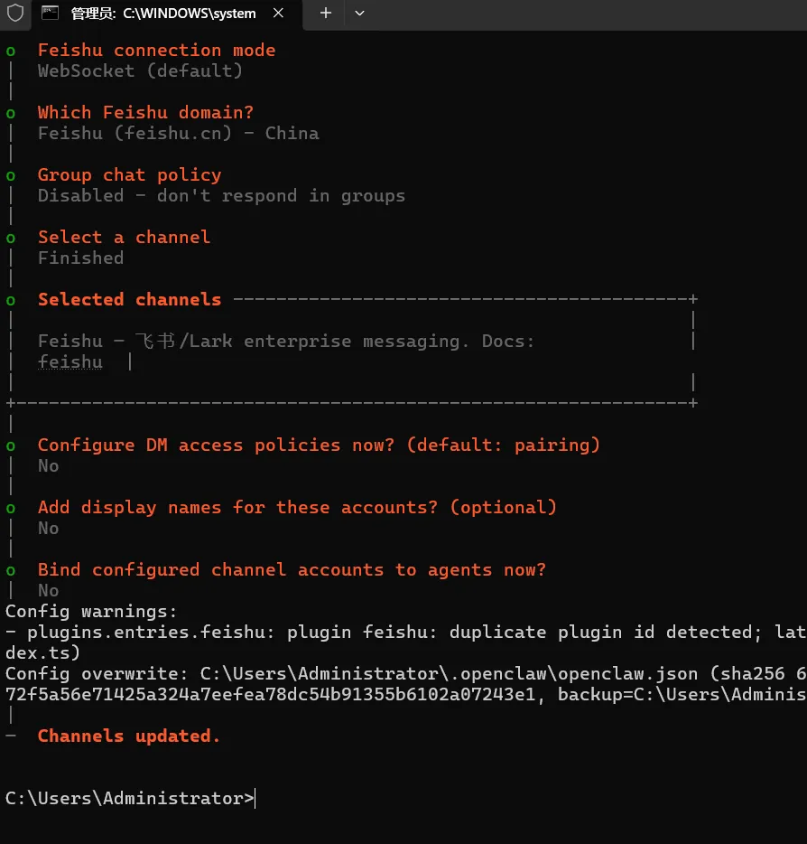这步需要先安装OpenClaw的飞书插件,终端输入下方命令,安装飞书插件