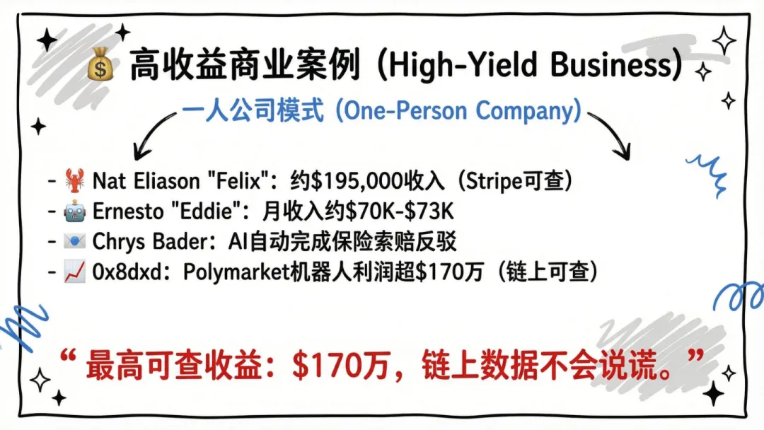海外:Felix(零人类CEO公司,收入$19.5万)、Eddie(全流程自动化,月入$7万+)、AI自动打赢保险官司、Polymarket机器人链上利润超$170万等