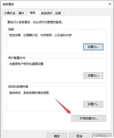 7. 在系统设置窗口中,点击“环境变量”。