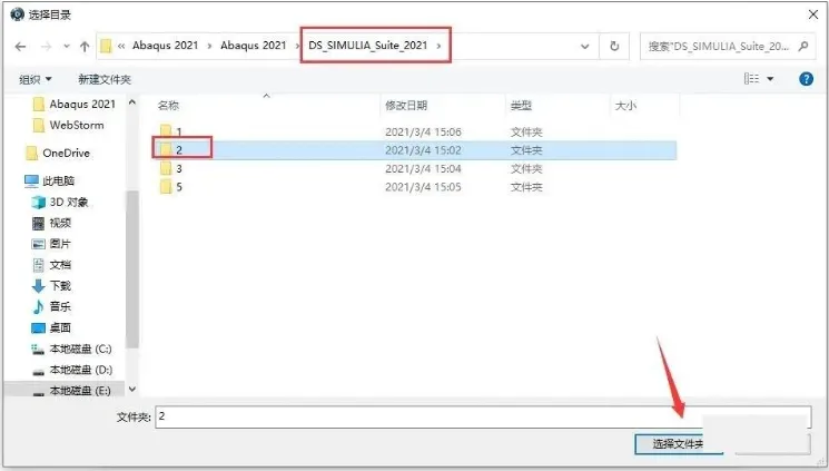 16. 在【DS SIMULIA Suite 2021】文件夹下,选择【2】文件夹。