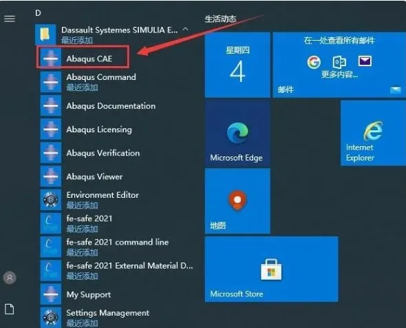 48. 在系统开始菜单中找到并打开Abaqus CAE软件。