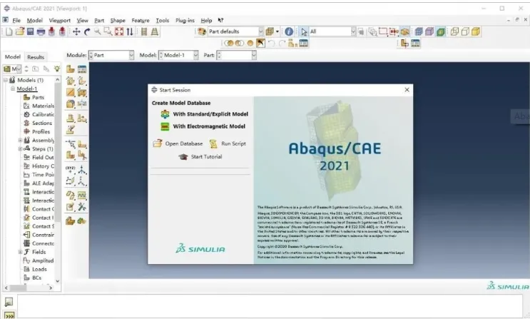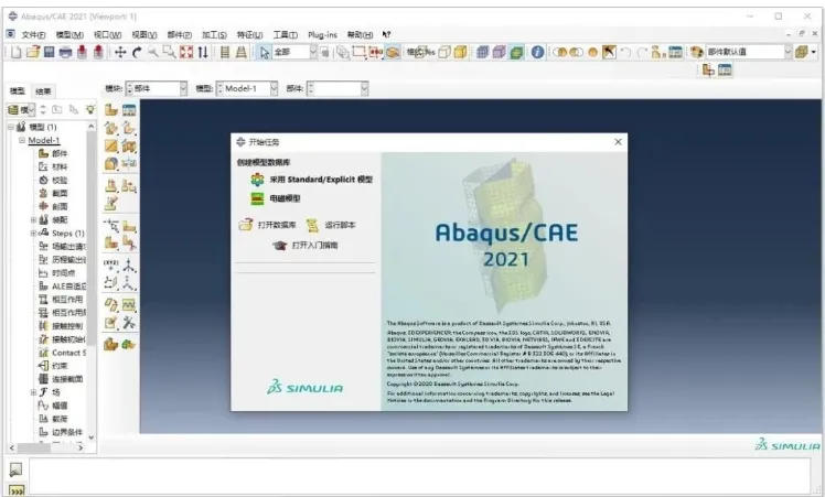 49. 安装成功后,Abaqus CAE会启动,显示英文界面。如果需要中文界面,请按以下步骤操作。
