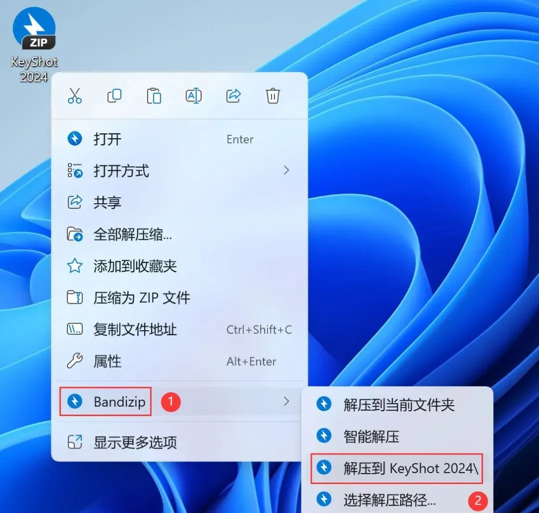1、下载KeyShot 2024软件安装包到电脑上,右键选择【解压到KeyShot 2024\】