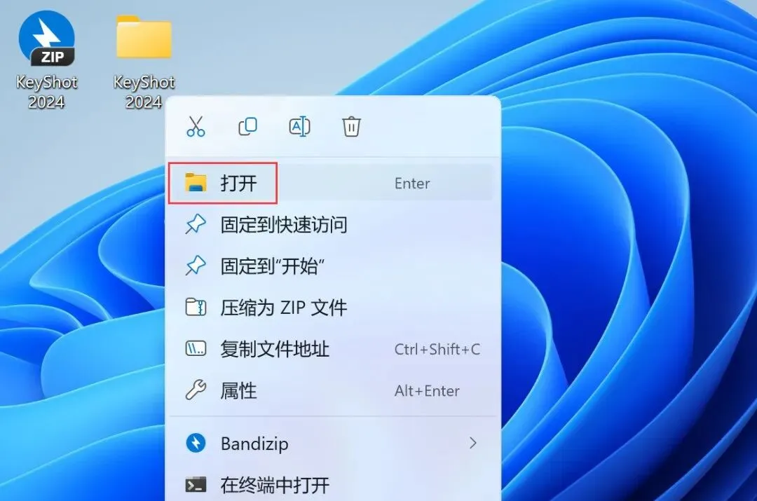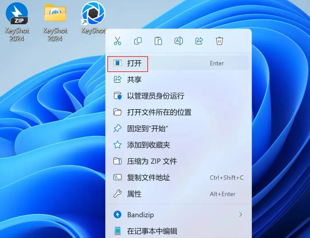 22、回到桌面,右键桌面上的【KeyShot 2024软件图标】,点击【打开】