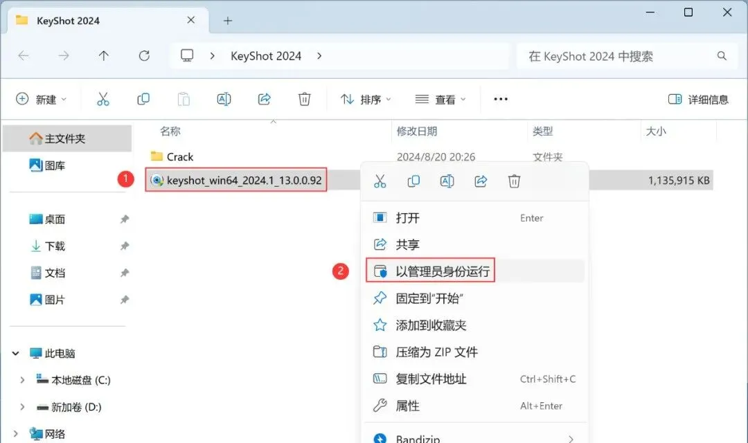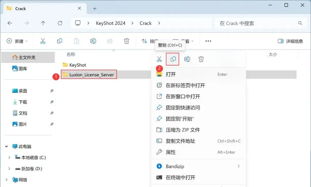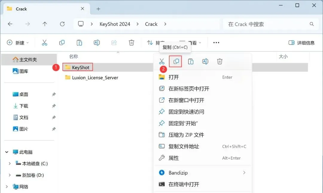 11、回到KeyShot 2024文件夹,找到【Crack】文件夹,右键【打开】它