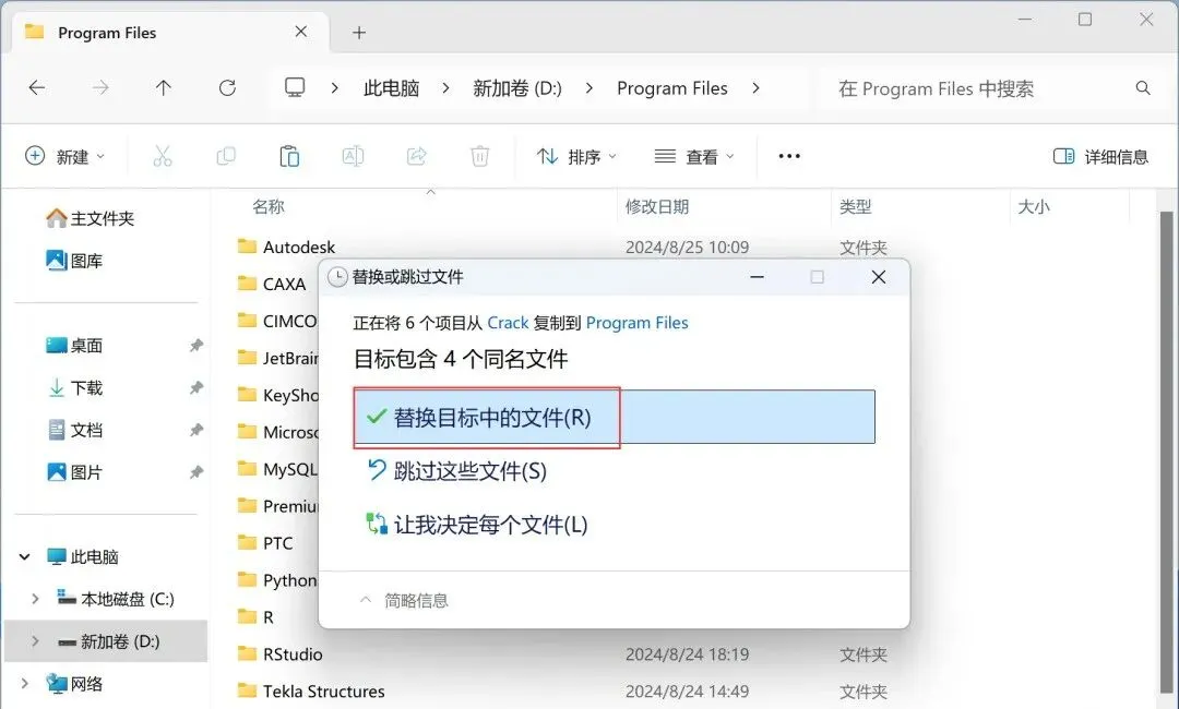 21、点击【替换目标中的文件】