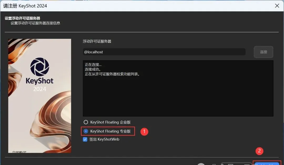 27、勾选【KeyShot Floating专业版】和【签出KeyShotWeb】,再点击【完成】