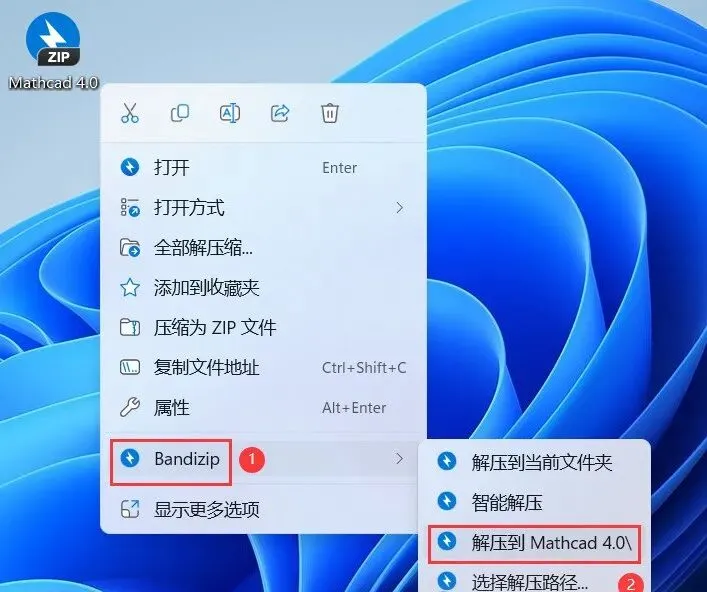 1、下载Mathcad 3.1软件安装包到电脑上,右键选择【解压到Mathcad 3.1\】