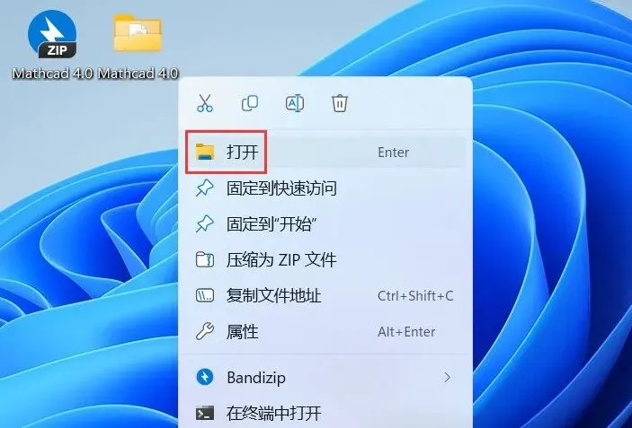 27、回到桌面,右键桌面上的【Mathcad 4.0软件图标】,点击【打开】