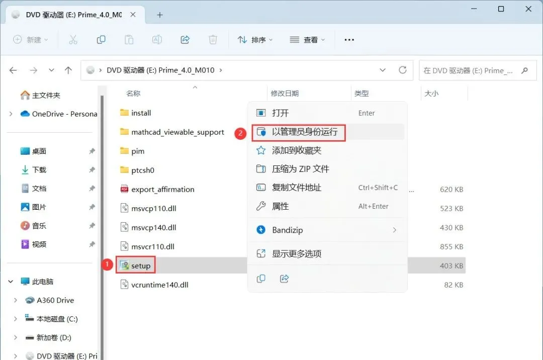 4、找到【setup】应用程序,右键选择【以管理员身份运行】它