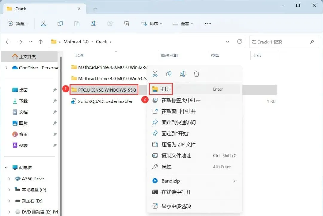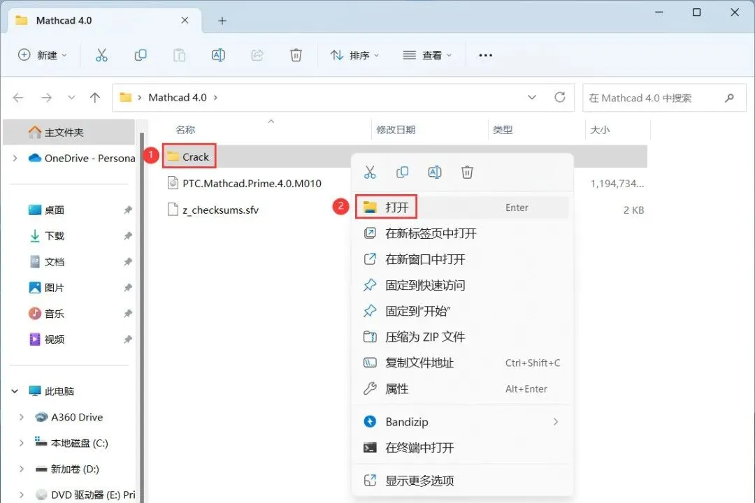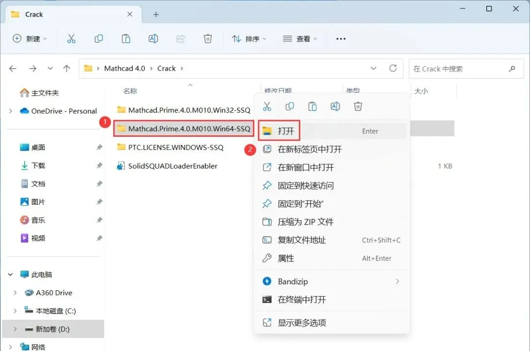 24、回到Crack文件夹,找到【Mathcad Prime 4.0…Win64】文件夹,右键【打开】它