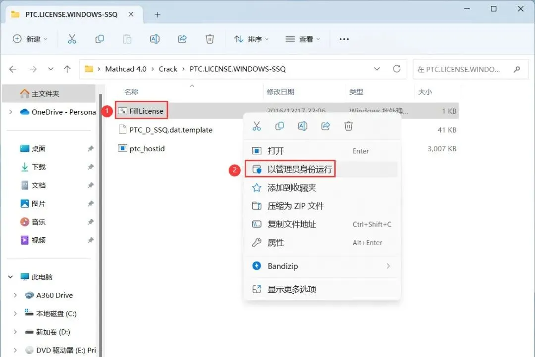 12、找到【FillLicense】程序,右键选择【以管理员身份运行】它