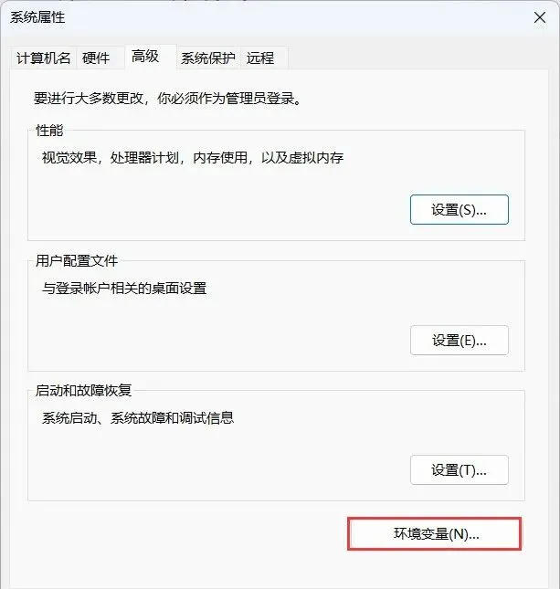19、点击【环境变量】