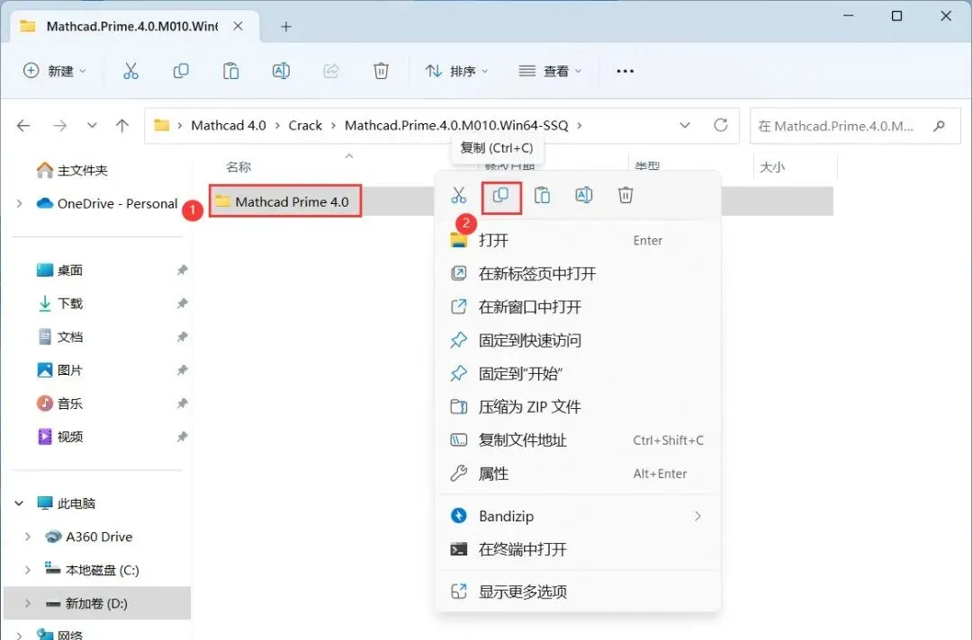 25、找到【Mathcad Prime 4.0】文件夹,再右键点击【复制按钮】