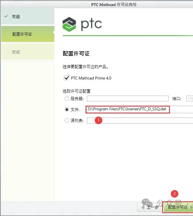 31、浏览路径为:D:\Program Files\PTC\ license\ PTC_D_SSQ.dat,再点击【配置许可证】