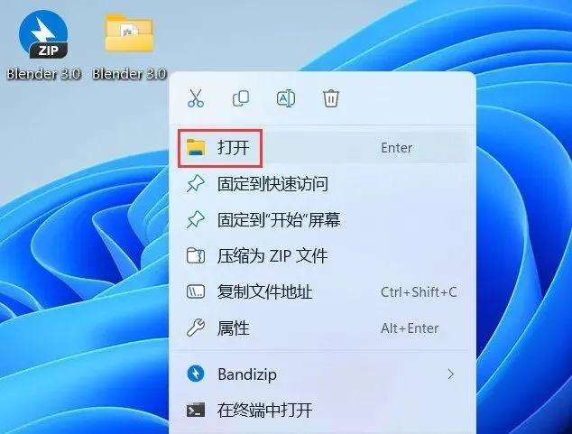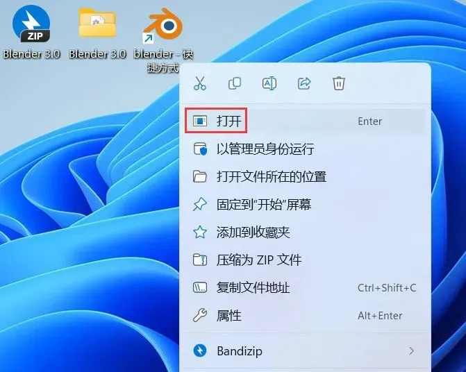 4、回到桌面,右键桌面上的【blender软件图标】,点击【打开】