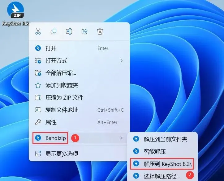 1、下载KeyShot 8.2软件安装包到电脑上,右键选择【解压到KeyShot 8.2\】