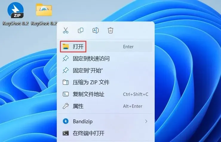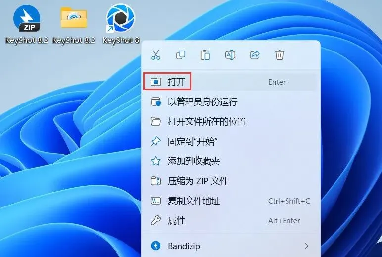 20、回到桌面,右键桌面上的【KeyShot 8软件图标】,点击【打开】