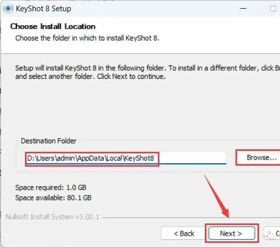 7、软件默认安装在C盘,可自定义更改软件安装位置,这里小编选择安装在D盘;点击【Next】