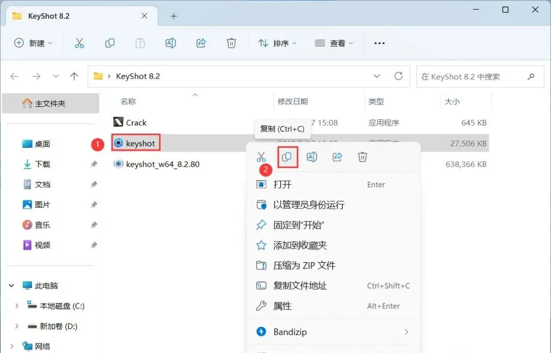 11、回到KeyShot 8.2文件夹,找到【KeyShot】程序,再右键点击【复制按钮】