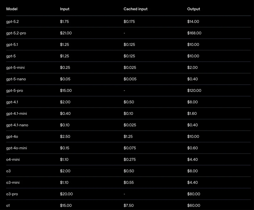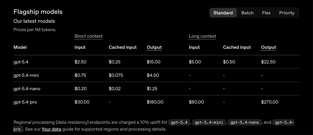定价链接:https://developers.openai.com/api/docs/pricing?latest-pricing=standard