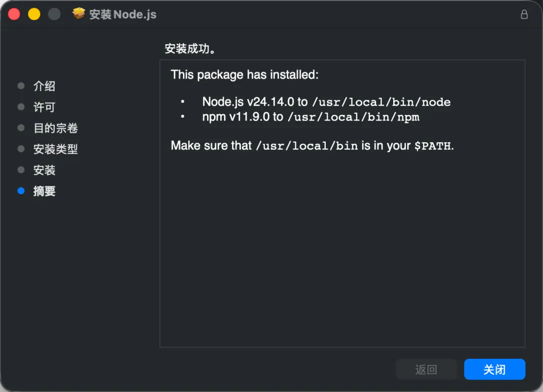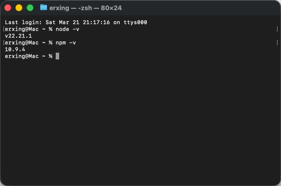 Node.js 安装完成后,打开终端。