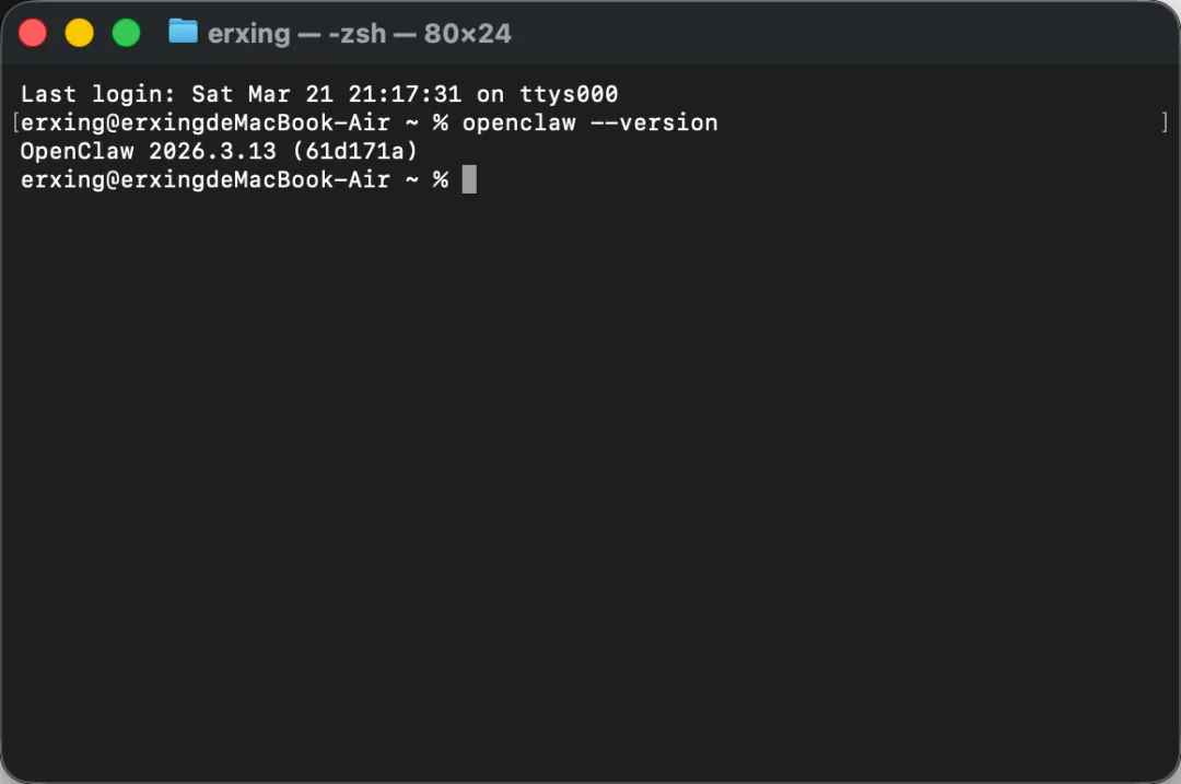 如果这里能正常显示版本号,就说明 OpenClaw 已经安装成功了。