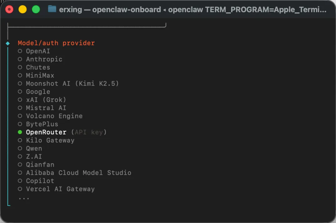 这里选择OpenRouter,直接回车进行下一步