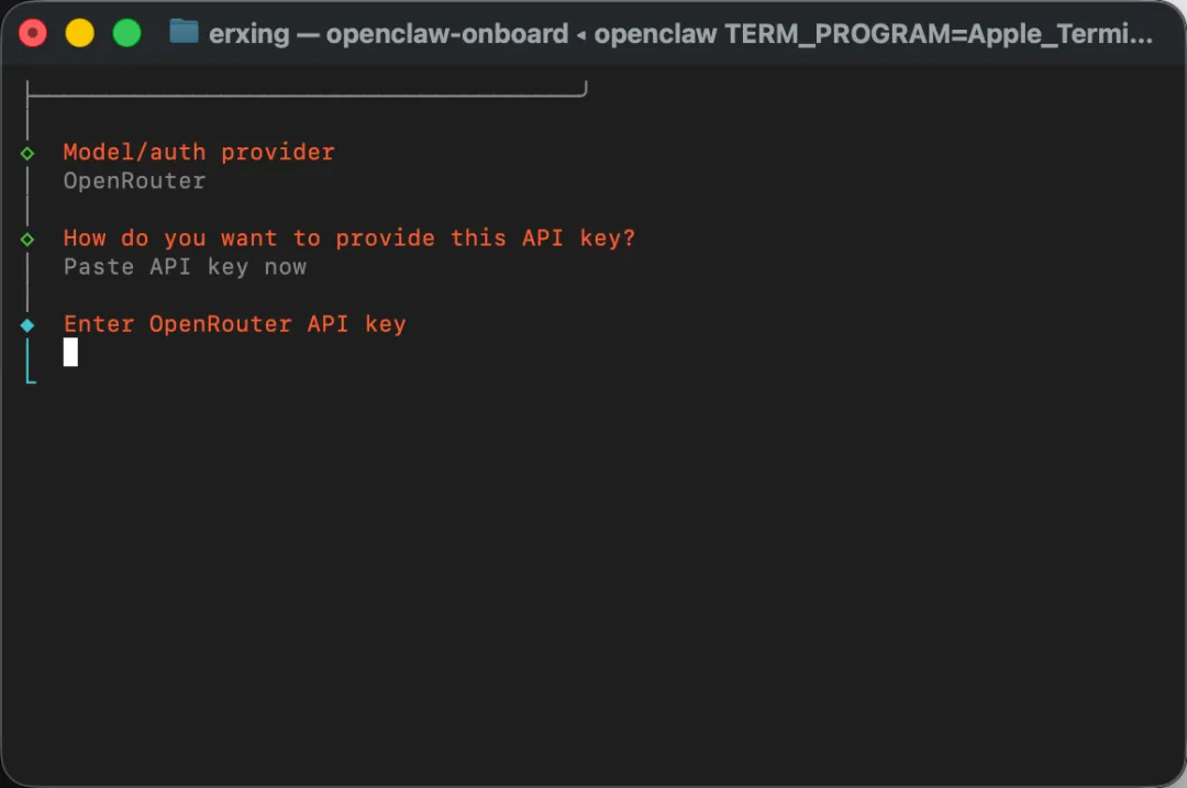 OpenRouter API key怎么免费申请 xiaomi mimo api key,上一篇文章大家可以去看一下呢,输入API key 以后回车