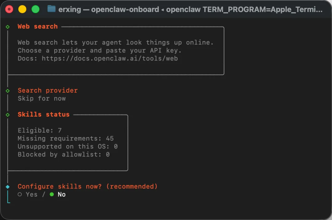 这一步也是一样,选择Skip for now + 回车
