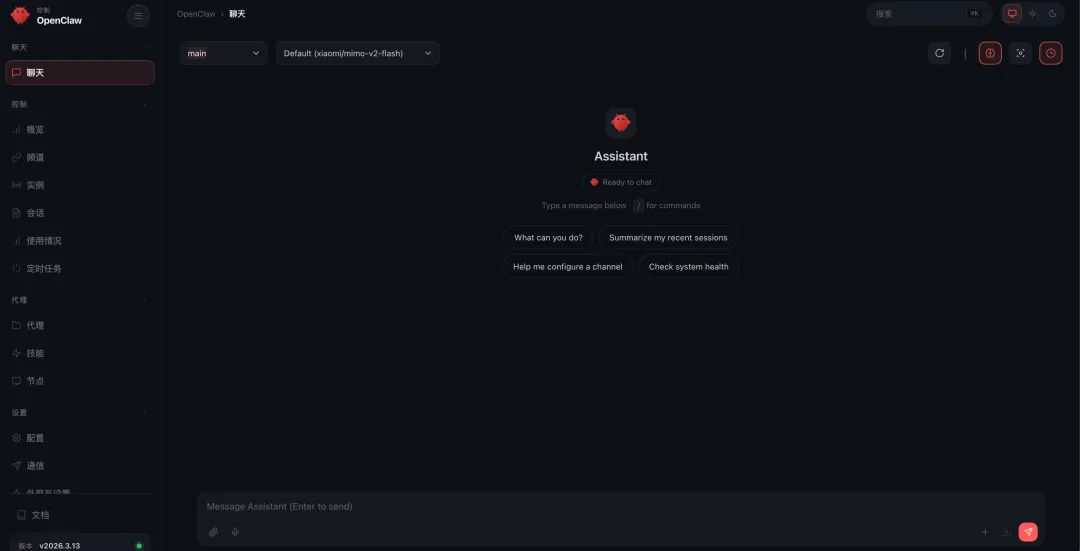 这个时候浏览器会自动打开你的 OpenClaw,说明已经安装成功了