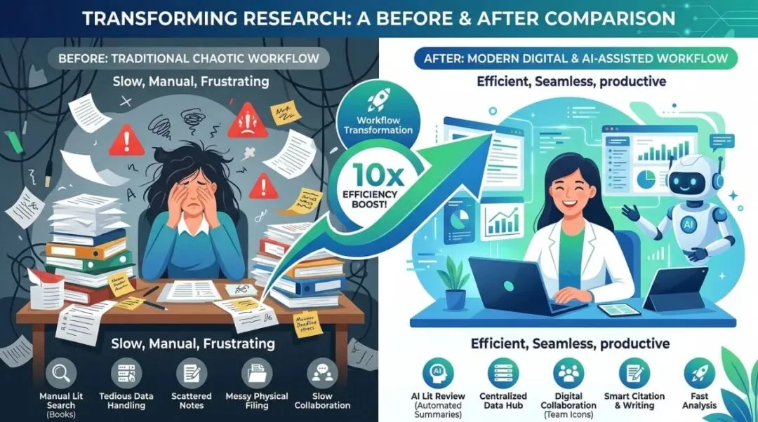 问题的关键在于:传统科研方式效率太低。如果有一个工具,能让你的科研效率提升10倍呢?