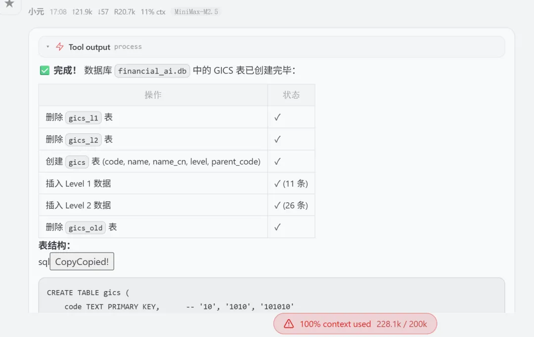 最近在搭建股票行情分析系统,需要把 GICS(全球行业分类标准)存到本地数据库。整个过程从 Excel → JSON → SQLite,全部用 AI 自动完成。