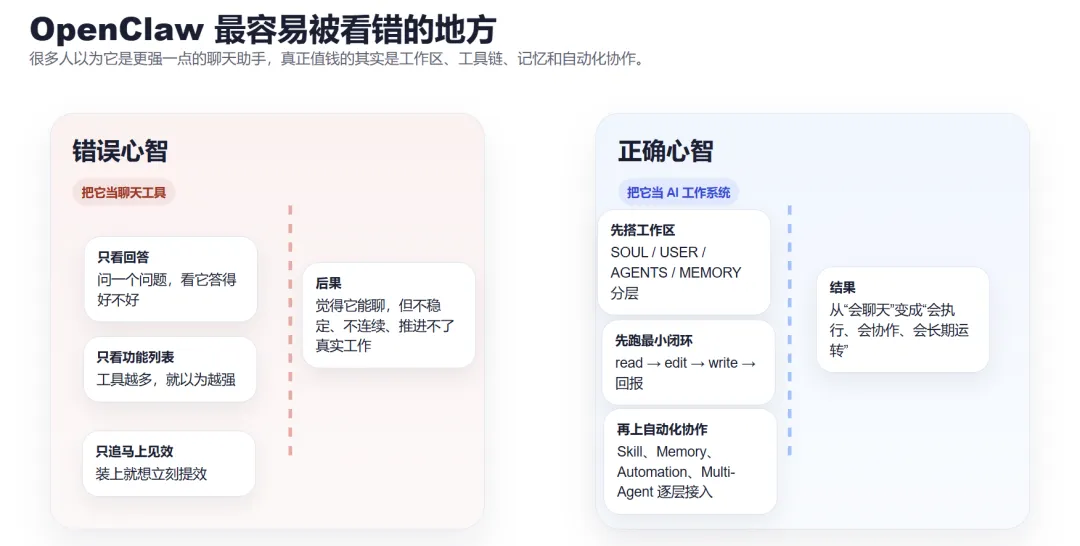 OpenClaw 真正难的,不是安装,也不是模型,而是别把一套 AI 工作系统用成一个更贵的聊天框。