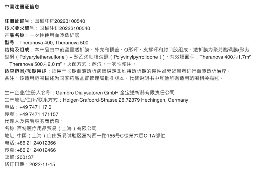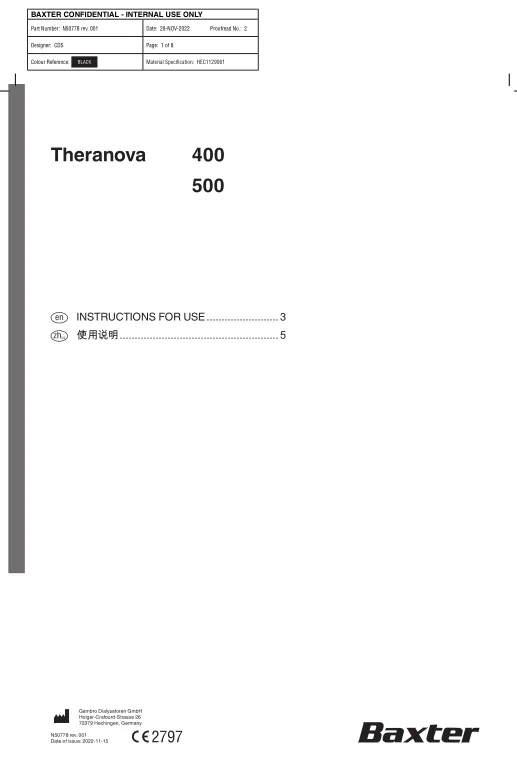百特《THERANOVA 透析器》说明书(Theranova 400, Theranova 500),PDF 8页,中英文