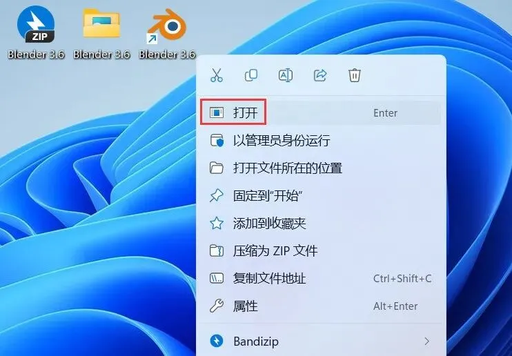 10、回到桌面,右键桌面上的【Blender 3.6软件图标】,点击【打开】