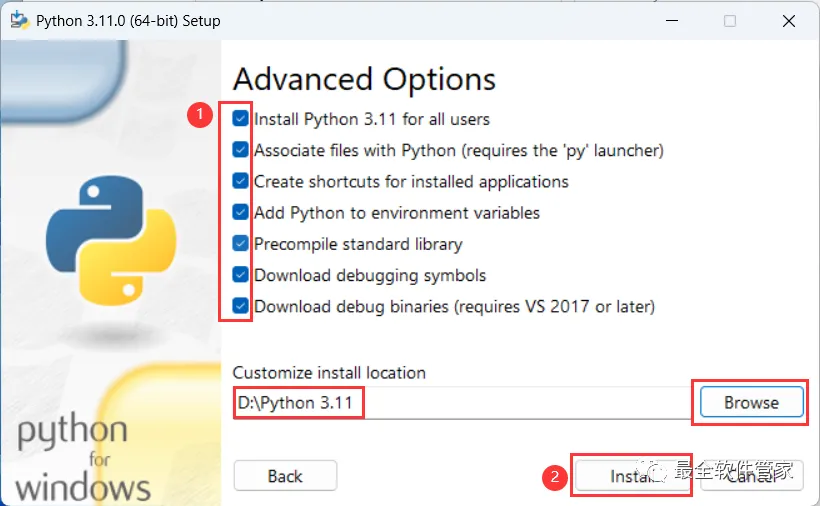 6、软件默认安装在C盘,可自定义更改软件安装位置,这里小编选择安装在D盘;全部选中,再点击【Install】