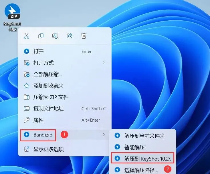 1、下载KeyShot 10.2软件安装包到电脑上,右键选择【解压到KeyShot 10.2\】