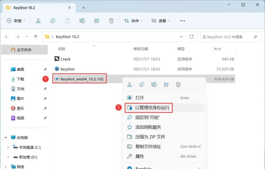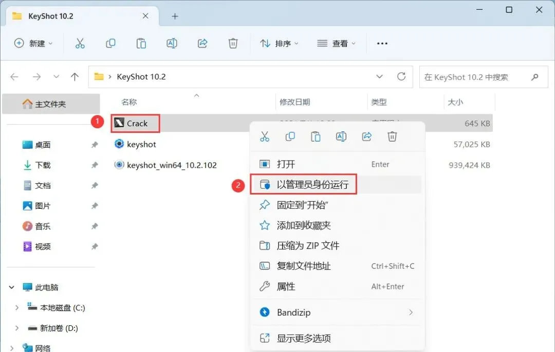 15、回到KeyShot 10.2文件夹,找到【Crack】程序,右键选择【以管理员身份运行】它