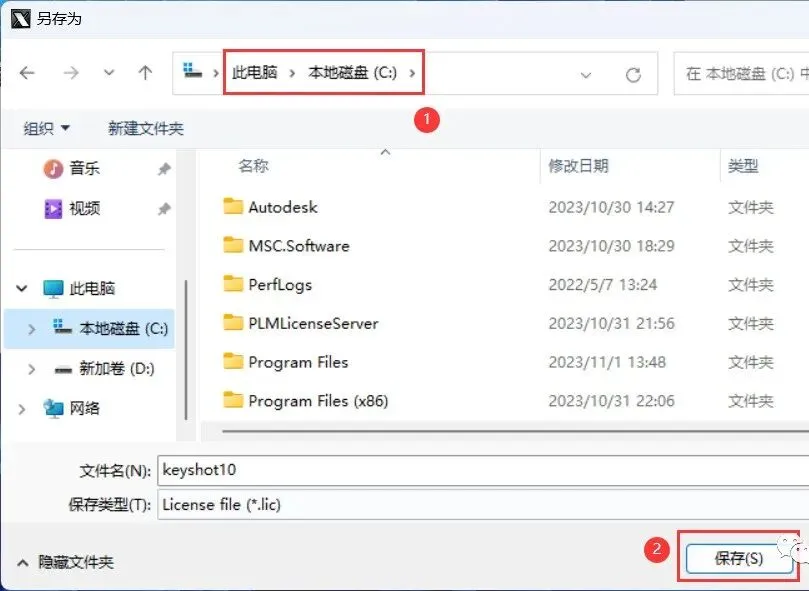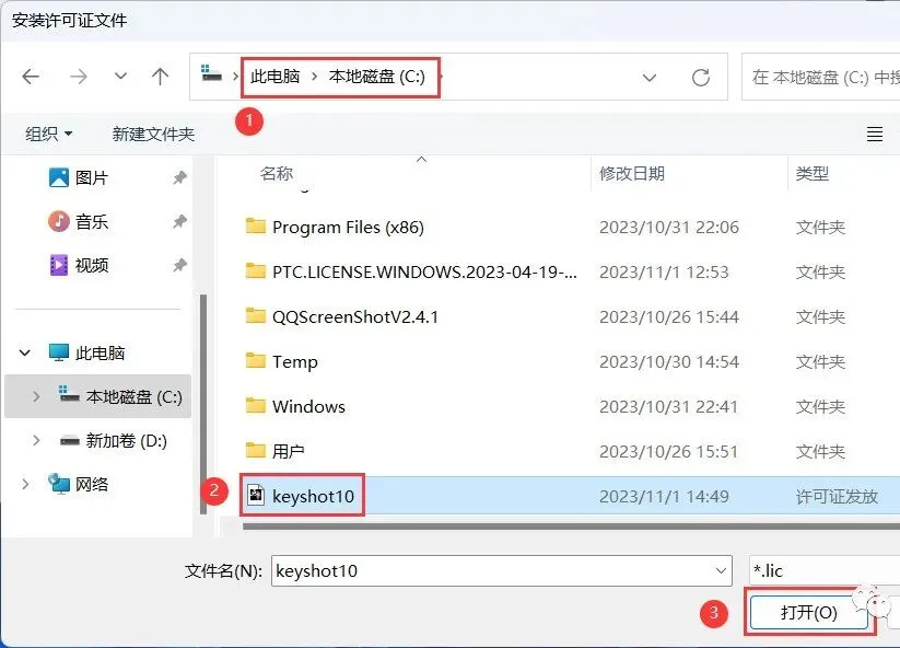 23、选择路径到C盘,找到并选中【Keyshot10】程序,再点击【打开】