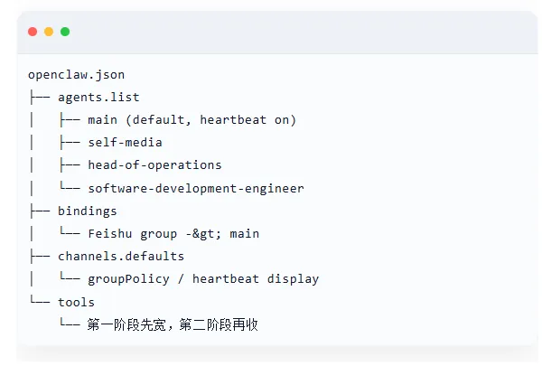 八、openclaw.json 不要一开始就追求“最严”,先把结构理顺