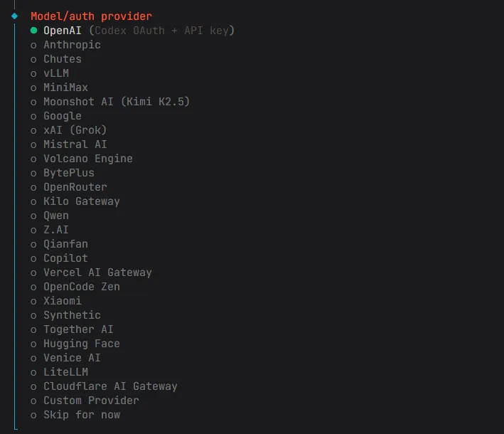openclaw onboard # 初始化向导