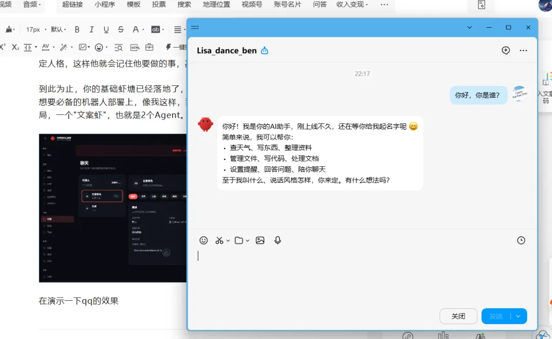 记住,到这个见面测试链接成功其他的什么都不要做!,晚些我们给他设定人格,这样他就会记住他要做的事,甚至记住你!