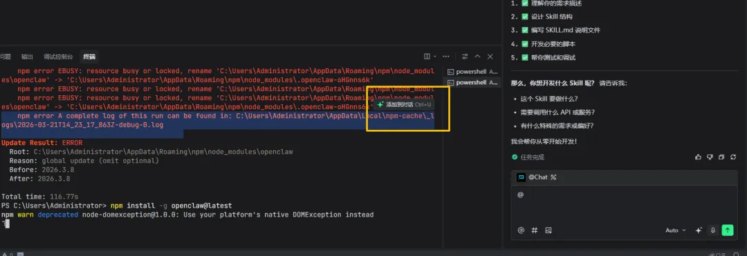 命令:npm install -g openclaw@latest